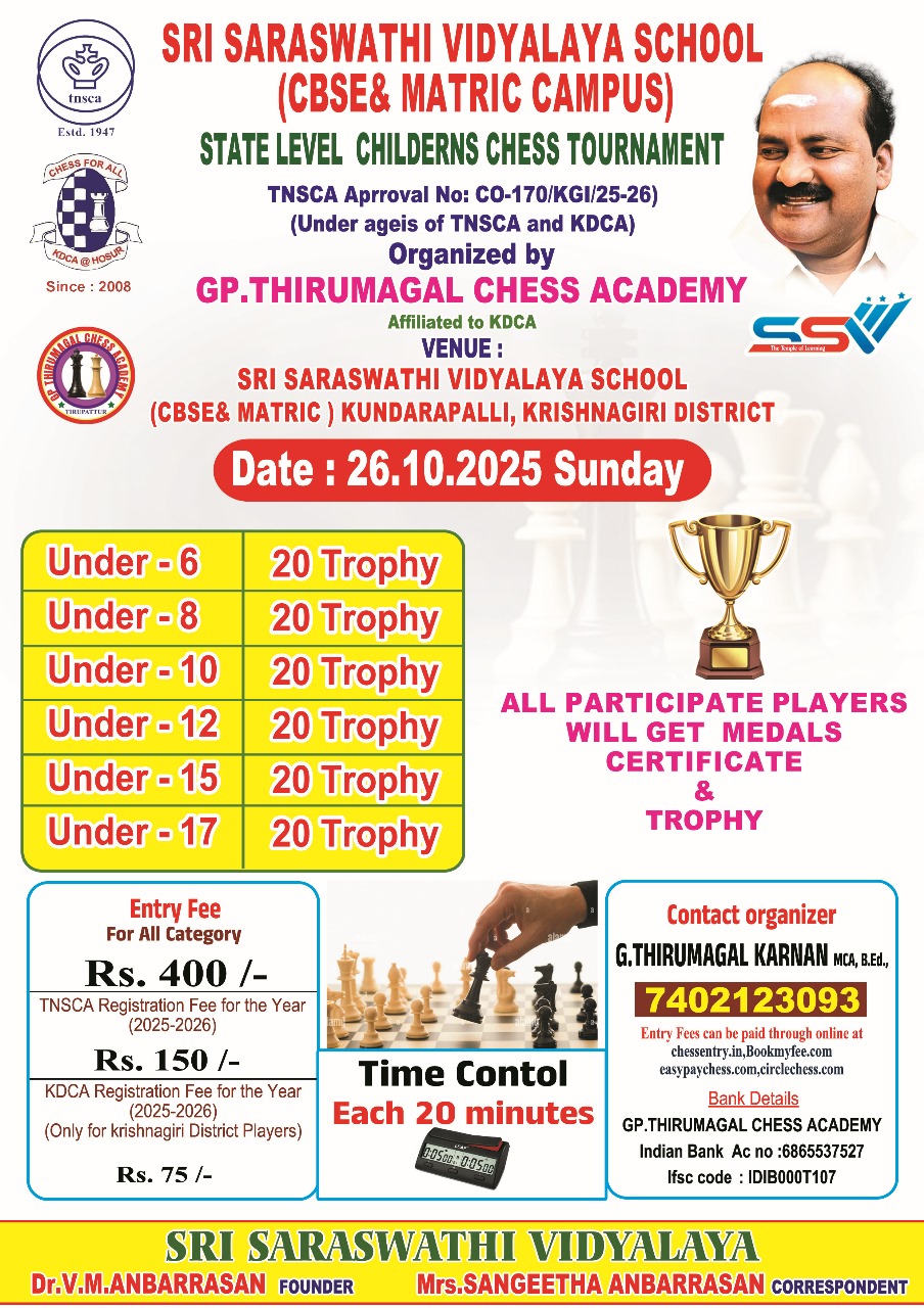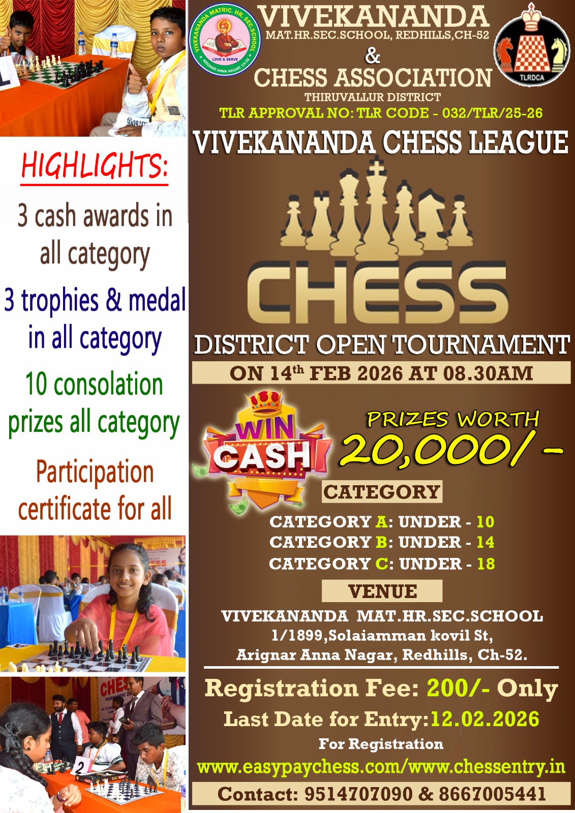 To know Chess Tournament InformationClick here to Join Wats App Channel |